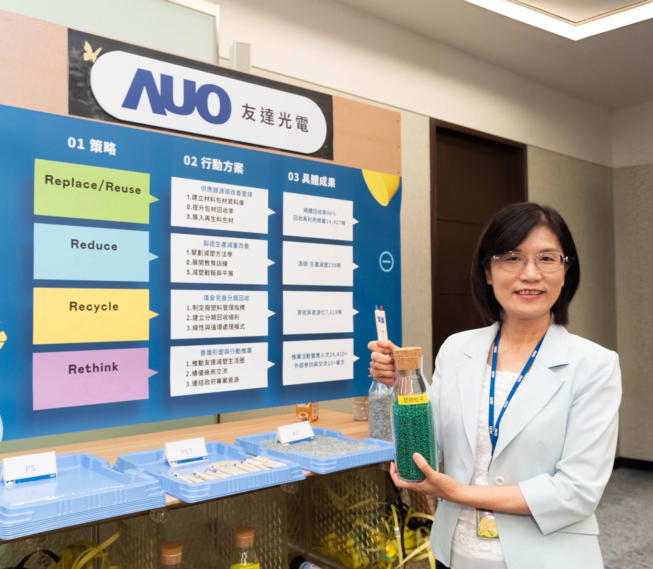 ![]() AUO collaborates with diverse industry partners in the inaugural Ecosystem Exhibition on Plastic Reduction, showcasing how waste plastics can be recycled and reused. The innovative solutions presented include the recycling and reuse of plastic packaging, the development and application of recycled plastics, advanced waste plastic recycling technologies, and proposals for reducing plastic use in daily life