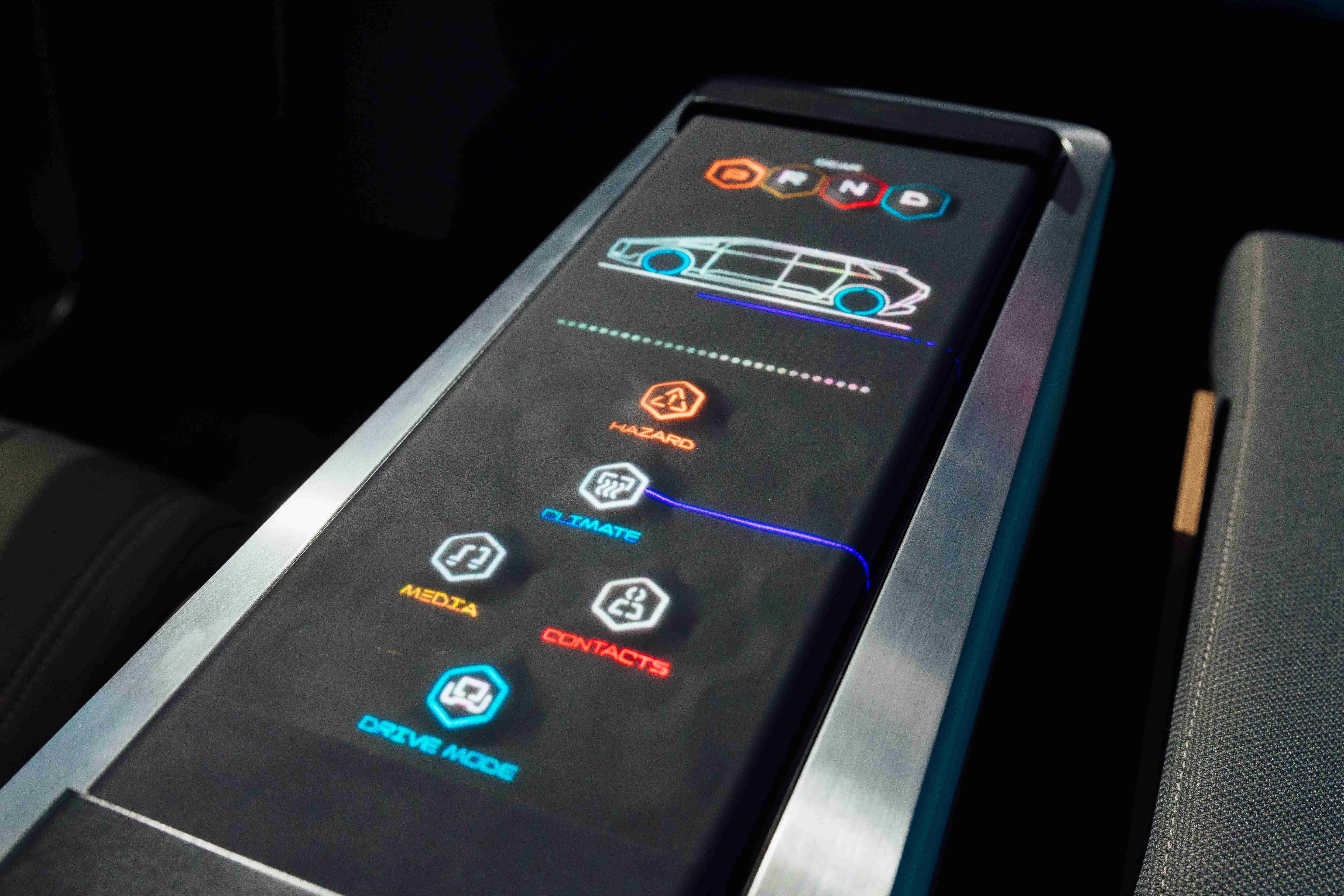 ![]() 多變形態(tài)中控顯示(Morphing Center Control)擁有動態(tài)變化的表面 ,平時常態(tài)顯示車輛功能,進(jìn)一步操作時 ,則會隆起成為3D 按鈕 ,并在觸控時以震動回饋 ,以精細(xì)的操作開創(chuàng)人機(jī)互動新境界。