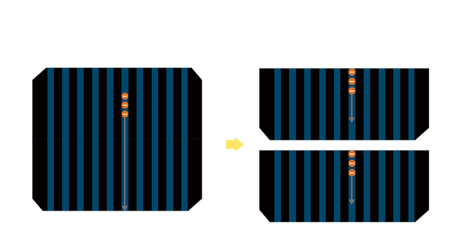• 結(jié)合半切電池 ,降低遮陰影響 、提升模組抗隱裂能力 、并減少電阻損耗 ,進(jìn)一步提升模組發(fā)電效能。