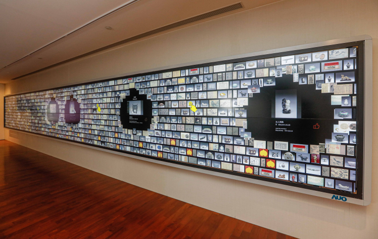 因應(yīng)全球智慧化文創(chuàng)展演新趨勢,創(chuàng)利空間本次聯(lián)手國際動畫界首屈一指的太極影音,整合故宮數(shù)位典藏資源,於導(dǎo)覽大廳打造結(jié)合科技與人文的智慧博物館互動展示空間。其中包括長達 12 公尺亞洲最大的「文物互動導(dǎo)覽牆」(*),採用 20 片友達 55 吋高規(guī)格拼接牆顯示器組成,具有高解析、低反射、極窄邊框的搶眼設(shè)計,拼接後的邊框?qū)挾葍H1.8mm,以近乎無接縫設(shè)計讓參觀者聚焦整體影像內(nèi)容,享受沉浸式觀賞體驗?;訉?dǎo)覽牆的設(shè)計靈感源自故宮多寶格文物,具有直覺友善的使用介面與紅外線感應(yīng)設(shè)計,可讓多人同時透過點選、拖拉、滑動等互動手勢,輕鬆飽覽 300 多件故宮文物精彩的圖像、影片、動畫、360 度環(huán)物模型及書法釋文,整合線上線下體驗,吸引觀眾接續(xù)前往展間探索實體文物。位於導(dǎo)覽大廳兩側(cè)的「展訊輪播牆」則分別由4片55吋拼接牆顯示器所組成,透過螢?zāi)惠啿ス蕦m當期展覽與重要活動訊息,讓參觀者得以先睹為快。